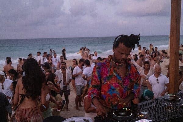 يقدم دي جي عروضه في مهرجان تم تنظيمه داخل المجمع، حيث يعيش العديد من السكان والزوار الأثرياء