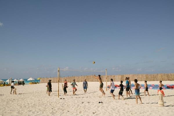 لعب الكرة الطائرة الشاطئية في قرية شاطئية بـ “الساحل الطيب”